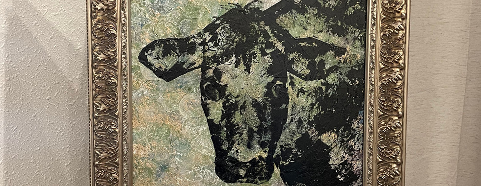 So, back to “the land flowing with milk and honey”… Did I also mention I painted a cow? No? Well, I did. Shrug. The things that I must do to maintain the sanity of my artist brain… Who doesn’t love cows? Well, I felt it only appropriate to mention this cow since we are talking about living abundantly in the land flowing with milk and honey. Seriously, look up how many times that is mentioned in the Bible. This painting is also un-named as I type this… while I try and figure out his name. Hopefully, by the time I finish this blog, I’ll have two names. One just came to me while typing about the Bee. Now for my cow.
